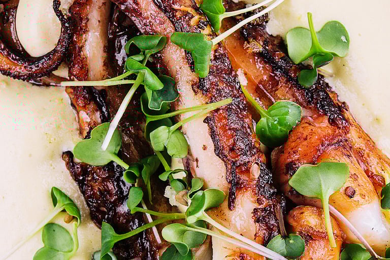 Polvo à Lagareiro is one of Portugal’s most beloved traditional dishes, known for its rich flavors, tender texture, and rustic simplicity. This classic recipe features roasted octopus drizzled generously with high-quality Portuguese olive oil—lagareiro meaning “olive-oil style,” a reference to the olive presses (lagares) of Portugal. The dish is typically prepared by slow-cooking the octopus until perfectly tender, then roasting it in the oven with garlic, onions, sea salt, and plenty of olive oil. It’s served warm with crisp batatas ao murro (smashed potatoes), which absorb all the delicious oils and aromatics.